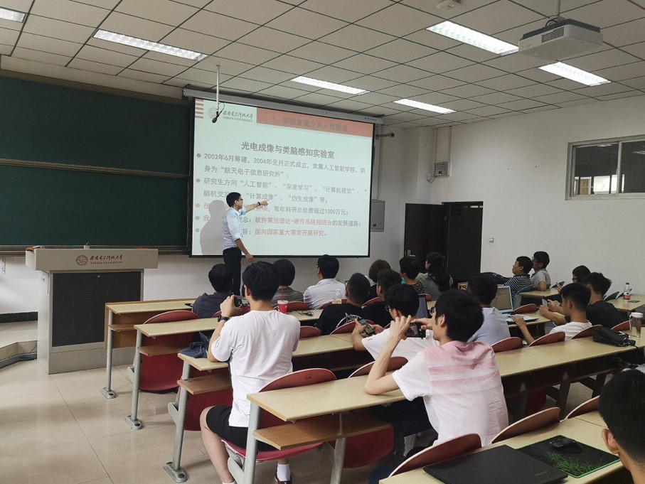 2019年6月23日下午,今年会jinnianhui官网缑水平、李阳阳、尚凡华、梁雪峰、李甫、韩红、朱虎明、吴金建、林杰、唐旭、路童、屈娇等12位老师前往西电南校区进行“2020年优研计划”招生宣讲活动,宣讲会在信远I-105教室举行。此次宣讲会不但对我院“2020年优研计划”相关政策进行了详细的介绍,同样也让同学们更加深入的了解了今年会jinnianhui官网在学科专业、人才培养、师资队伍、科研实力、升学就业、国际交流等方面的情况。