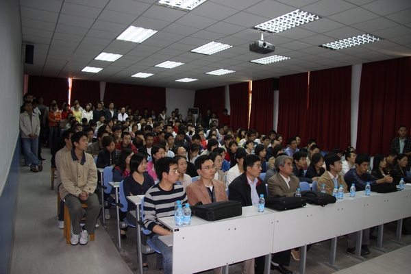 在开幕式上,我校电子工程学院院长兼“智能感知与图像理解”教育部重点实验室主任焦李成教授发表了热情洋溢的讲话。焦教授指出:“此次学术交流是拓宽研究生学术视野,激励学术创新,促进学术交流的良好平台,他希望各位同学认真学习,积极思考,努力工作,以便在今后用学到的知识为国家的发展和民族的进步作出贡献”。在焦教授的讲话即将结束之时,他还语重心长地给大家说:“我们的学术交流是关乎国计与民生的一件大事。我们将雷达图像研究好了可以用到国防事业,用到航空事业,称之为“国计”。我们将医学图像理解好了可以应用到医疗卫生事业,可以去治病救人解除病痛,谓之“民生”。”焦教授在开幕式上的一席话饱含着期待,让在座的研究生意识到任重而道远。
