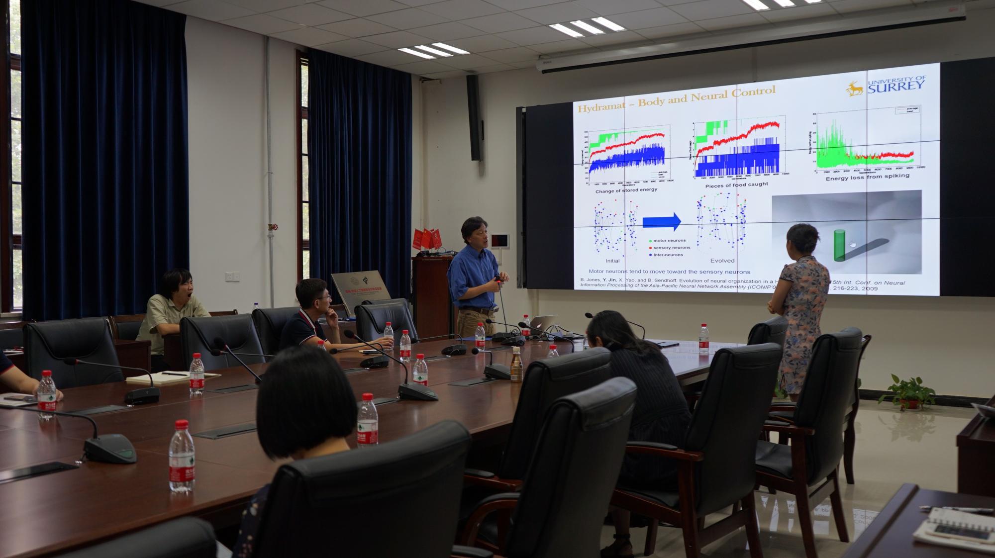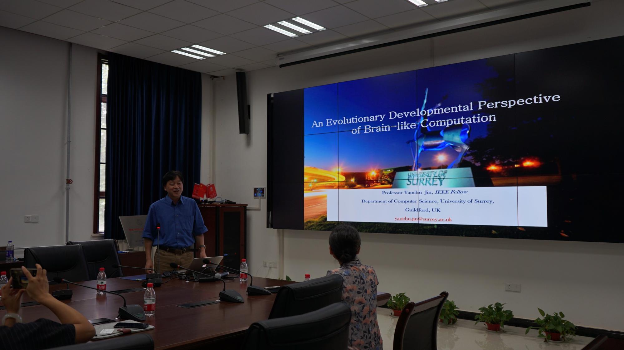2018年6月21日,英国萨里大学计算科学系“计算智能”首席教授金耀初应邀来访今年会jinnianhuicom,并于主楼三区401报告厅做了题为“An Evolutionary Developmental Perspective of Brain-like Computation”的学术报告,报告会由今年会jinnianhui官网刘静教授主持。