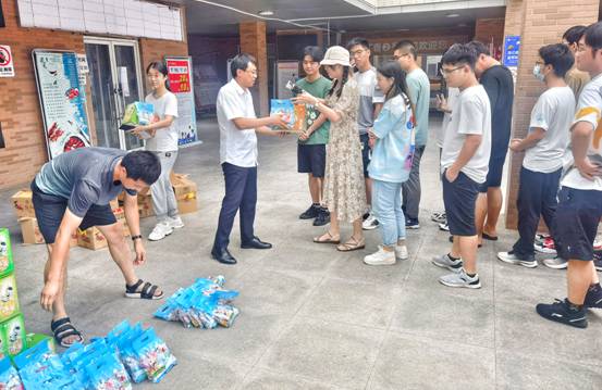 2019级智能科学与技术专业的苏昊阳一边帮忙搬运物资,一边说到,最近一直在备战考研,经常会感到焦虑和不安,学院送来的“清凉”犹如炎炎烈日下的阵阵清风,让人舒爽。作为智能学子,他感觉很幸福。