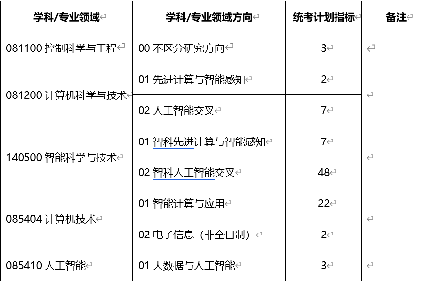 140500智能科学与技术 | 01智科先进计算与智能感知 02智科人工智能交叉 | 310 | 45 | 65 |