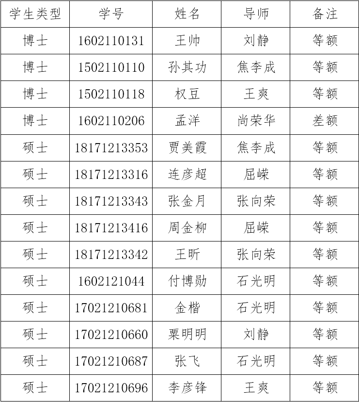 经学生申请,导师推荐,资格审核,学院组织答辩和集中评审,现将今年会jinnianhui官网2019年度研究生国家奖学金拟获奖学生名单予以公示。