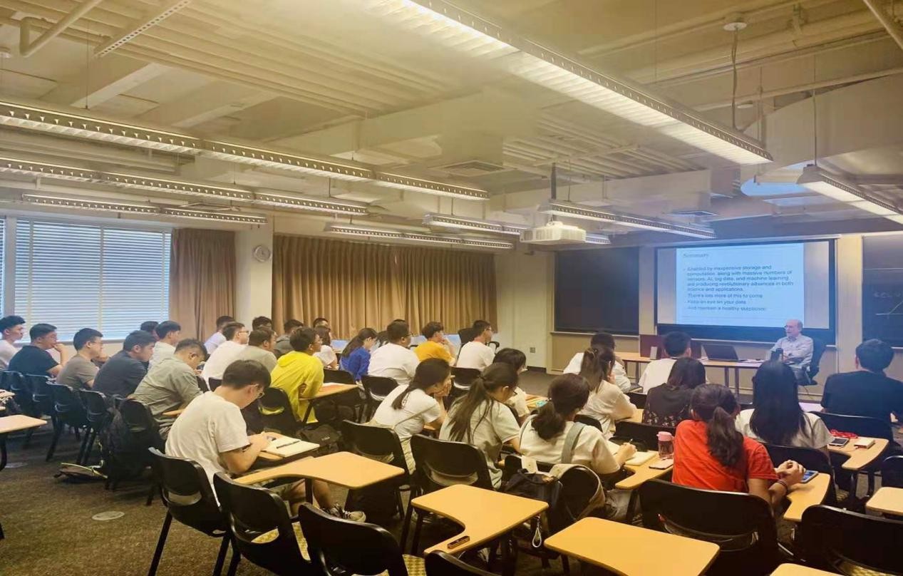 麻省理工学院人工智能实验室副主任、电子工程与计算机科学系Randall Davis教授讲述的《人工智能概述》及《人机智能交互》课程,让同学们更好地掌握了适用于任何行业或职业的基础数据分析技能。他首先介绍了人工智能的发展历程,接着举重若轻地对人机智能交互的基本模型和主要学习理论进行了系列探讨和分析,并仔细讲解了机器学习过程中如何测试学习结果的技巧。课上他用生动易懂的例子向同学们阐述了如何通过数据建立可视化数据模型,做到有效地收集、组织和分析数据,并利用统计和实验等技能推断结果和解决问题。与国内课堂不同,Randall教授在课上要求同学们有问题随时打断他进行提问,同学们从刚开始的小心发问,到逐渐习惯这种课堂模式,积极与教授互动交流,课堂气氛十分热烈。