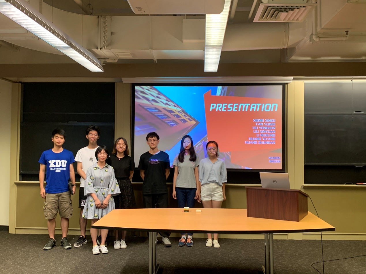 在访学活动的尾声,同学们被分成五个小组进行结业汇报,展示两周以来的学习成果,并分享自己的感悟和成长。同学们分工明确,有人讲述了自己通过学习对机器学习、自然语言处理的认识,有人分享了自己对美国校园文化的感受和对历史名胜参访后的感悟,还有人表达了对此次访学活动的感受,表示进一步明确了学习目标,有了十足的动力。