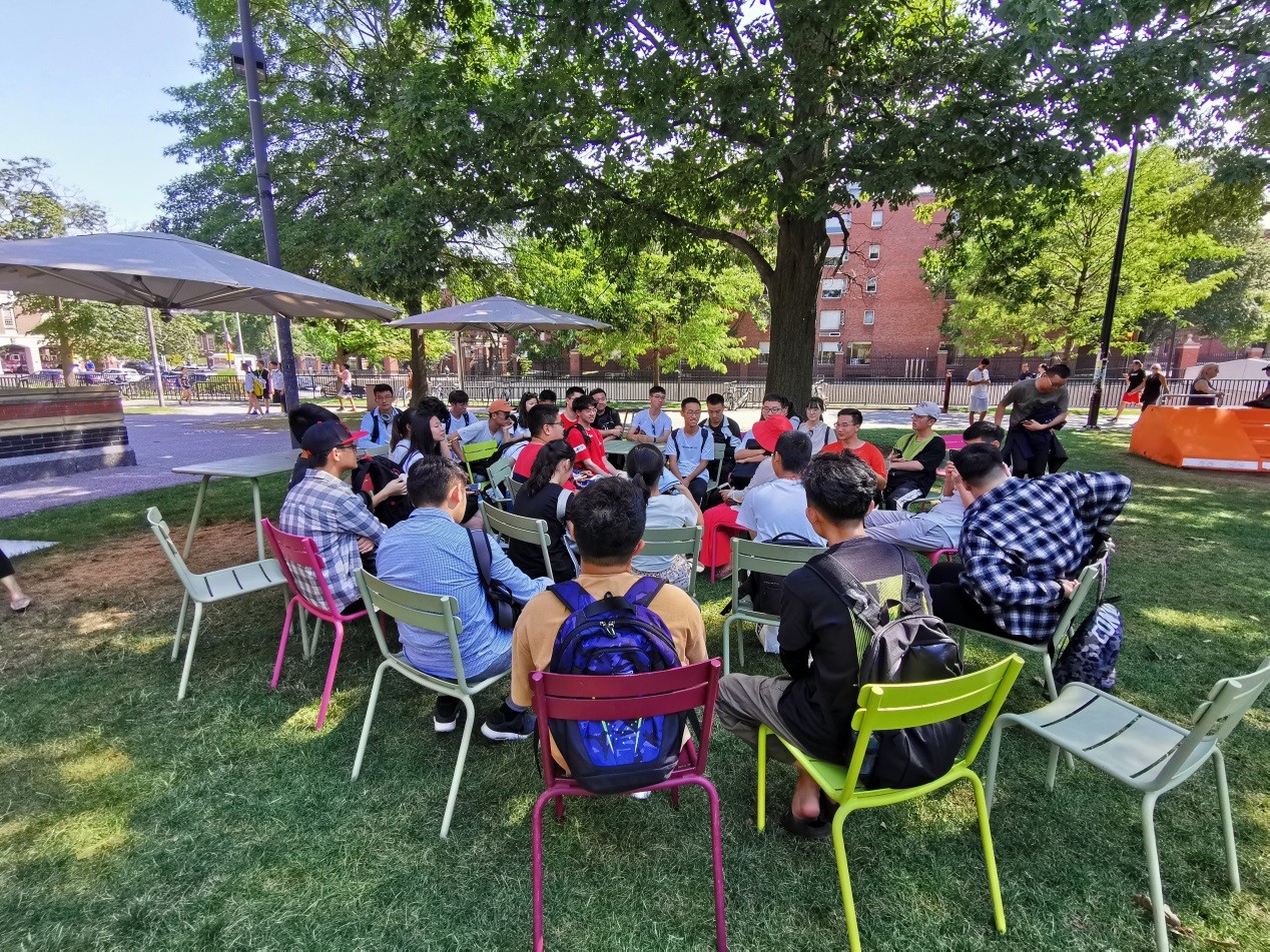 同为世界顶级名校,与MIT同样坐落于美国剑桥的哈佛大学又是另一种味道。走进哈佛园,印象最深的便是优美的校园环境,人与自然融合,建筑古朴典雅,置身于其中仿佛童话王国一般。在哈佛校园中,浓重的历史与文化气息交相呼应。同学们在哈佛标志性建筑John Harvard铜像前合影留念,纷纷触摸他的脚,因为据说这样会带来好运。随后,在校园分享会上,大家认真聆听老师对哈佛的讲解,感受这座世界一流名校的厚重底蕴和独特魅力。