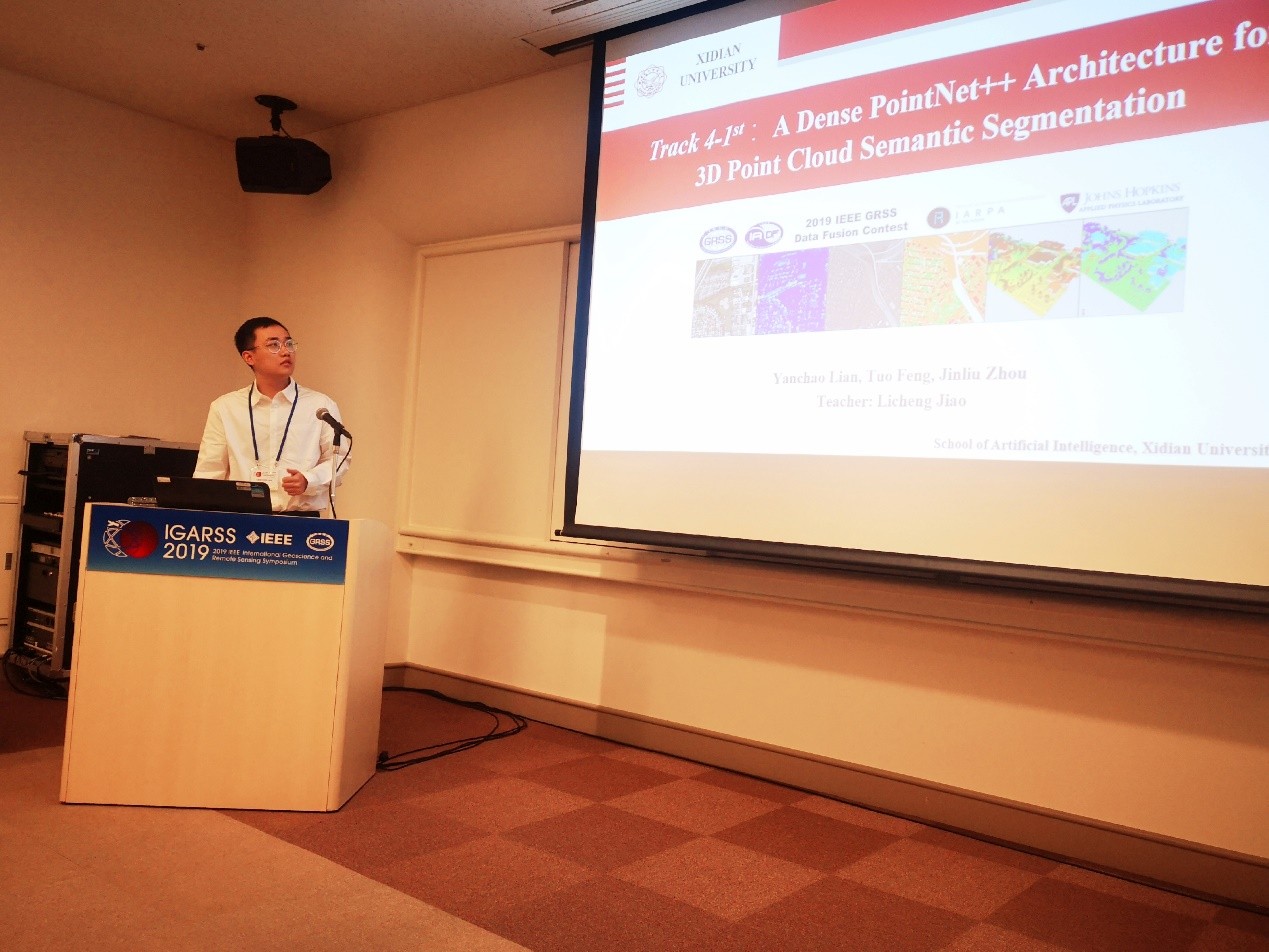 由今年会jinnianhuicom焦李成教授指导的两支学生队伍在2019 IEEE GRSS数据融合竞赛中获得了优秀成绩,其中,“连彦超、冯拓、周金柳”获得了3D点云分类挑战赛冠军,“贾美霞、李艾瑾、吴兆阳”获得了同赛道亚军,并受邀在2019年7月31日大会上作专题报告。