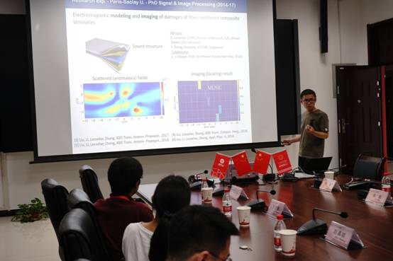 开幕座谈后,是学院光电成像与类脑感知团队与来访学者的自由交流环节。来自巴黎高等电信学院刘自成博士、德国国家宇航局张宏谋博士、悉尼科技大学赵慕铭博士、伊利诺伊大学芝加哥分校研究助理王申博士依次为院领导及光电系与会师生作了精彩的学术报告。报告中受邀青年学者与我院教师讨论热烈,良好的学术交流氛围将会议气氛推向高潮。报告结束后,光电成像与类脑感知团队邀请青年学者走进实验室参观,就团队部分科研成果及研究方向进行具体探讨。
