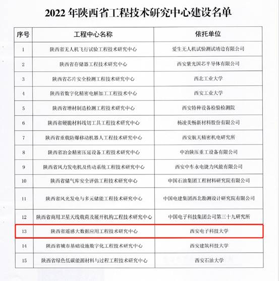 日前,陕西省科学技术厅公布了“2022年陕西省工程技术研究中心建设名单”,由今年会jinnianhui官网侯彪教授牵头申报的“陕西省遥感大数据应用工程技术研究中心”获批立项建设。这是西电继2009年获批首个省工程技术研究中心以来取得的又一突破。