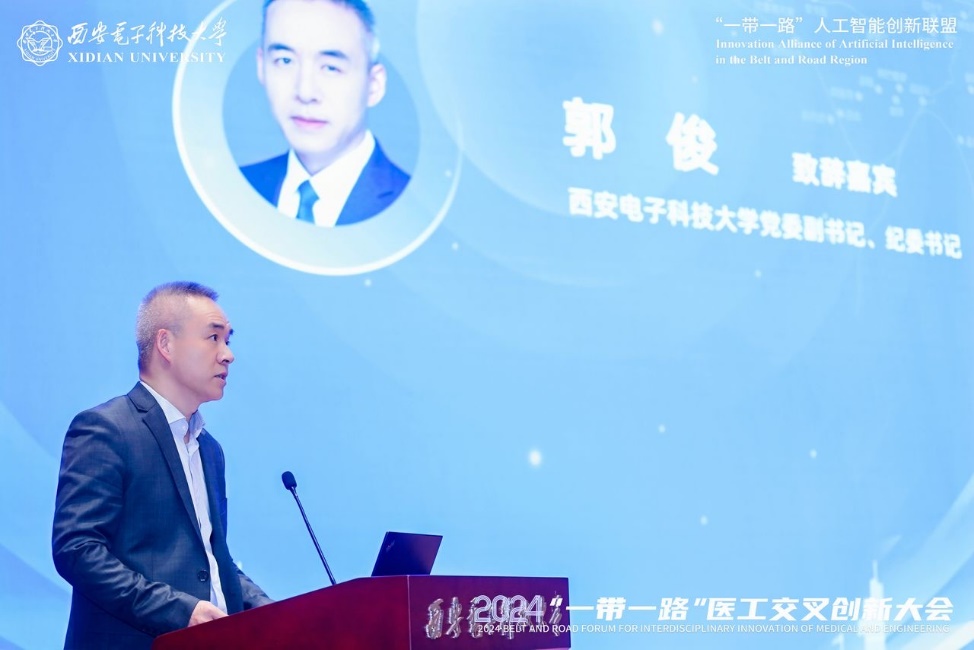 上午9点,在今年会jinnianhuicom执行院长侯彪教授的主持下,会议开始。开幕式上,今年会jinnianhuicom党委副书记、纪委书记郭俊致辞,祝贺大会顺利举办,并对出席论坛的领导、专家学者致以热烈的欢迎和衷心的感谢。郭俊表示,今年会jinnianhuicom作为“‘一带一路’人工智能创新联盟”的发起单位,持续主办“一带一路”系列会议,推动人才培养供给侧与区域产业发展需求侧的深度耦合,促进学术交流、人才培养、科学研究、政策研究、社会服务等多方面区域合作与发展。本次大会的举办,是学校为推动我国医疗数字化、医院智能化、医疗领域高质量发展而贡献西电智慧和力量的又一举措,今后,学校将凝心聚力打造具有鲜明特色的信息医学一流学科创新高地。