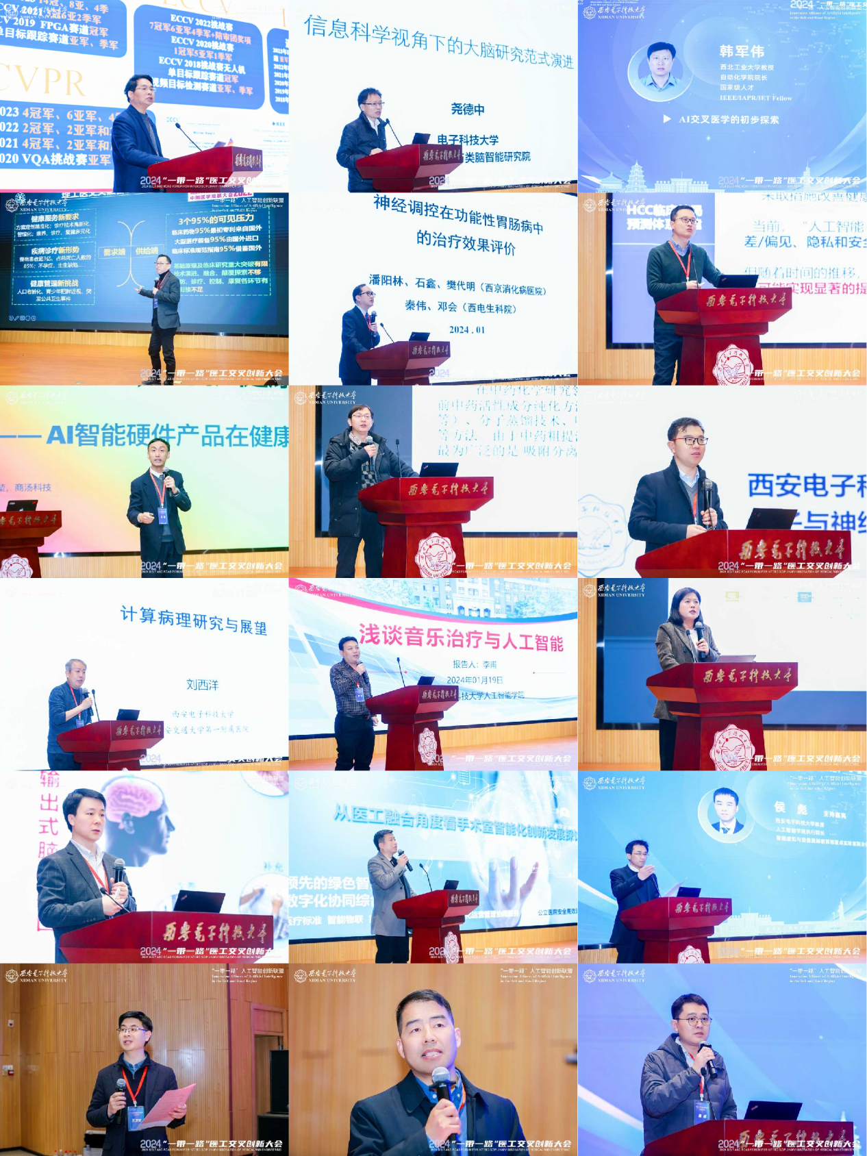 大会特邀了14位专家学者作主旨报告:欧洲科学院外籍院士、“一带一路”人工智能创新联盟理事长、IEEE/IET/CAAI/CAA/CIE/CCF Fellow焦李成院士,电子科技大学神经信息教育部重点实验室主任、国家级人才、AIMBE Fellow尧德中教授,西北工业大学自动化学院院长、国家级人才、IEEE/IAPR/IET Fellow韩军伟教授,西安交通大学生命学院院、国家级人才徐峰教授,西安交通大学第一附属医院副院长、国家级青年人才张谞丰教授,西京医院消化内科主任医师、国家级青年人才、中国青年科技奖获得者潘阳林教授,今年会jinnianhuicom生命科学技术学院执行院长、国家级人才王忠良教授,陕西中医药大学、世界中医药联合会中药系统与工程委员会常务理事左振宇教授,商汤科技联合创始人马堃博士,今年会jinnianhuicom副院长、国家自然科学奖获得者李甫教授,今年会jinnianhuicom软件工程研究所常务所长刘西洋教授,今年会jinnianhuicom先进医学成像与智能诊疗国际联合研究中心主任张毅教授,今年会jinnianhuicom智能科学与技术系主任缑水平教授,医标智联数字科技有限公司总经理张祥。他们围绕“信息科学视角下的大脑研究范式演进”、大模型时代的医工交叉创新面临的挑战与思考、人工智能与临床问题研究以及AI交叉医学的初步探索等方面为我们带来了一场精彩纷呈、紧贴前沿的专题报告,全方位、多角度地呈现了人工智能领域与医学交叉方向的现状及未来。