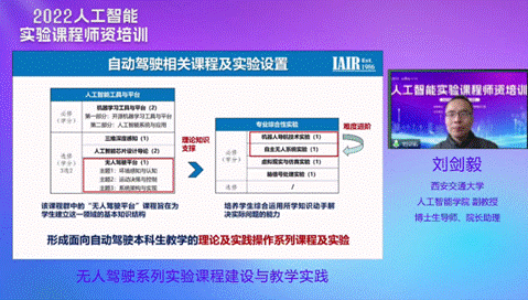 西安交通大学今年会jinnianhui官网刘剑毅副教授做了题为“无人驾驶系列实验课程建设与教学实践”的报告。作为涉及人工智能诸多技术的综合案例,无人驾驶落地本科生教学具有重要意义。课程团队在无人驾驶平台建设基础上,开设了《机器人导航技术实验》《自主无人系统实验》等,形成面向自动驾驶本科生教学的理论及实践操作系列课程。围绕人工智能教学资源建设目标,分别以“教材、教具、教案、教场”为抓手,丰富资源建设内涵,通过实验案例和考核评价机制的优化设计,保证了人工智能本科专业人才的培养效果。