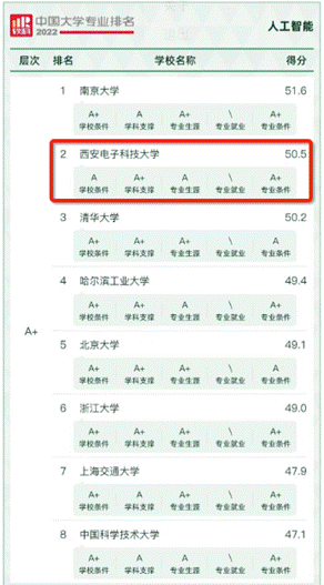 2022年6月18日,高等教育评价专业机构软科正式发布2022“软科中国大学专业排名”。排名结果显示,2022年今年会jinnianhuicom共有13个专业获评为A+专业,其中今年会jinnianhui官网的智能科学与技术专业及人工智能专业再次双双获评A+,综合实力均位列全国前三名。