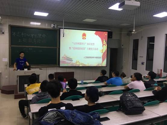 (通讯员:李怡桐)为庆祝中华人民共和国成立70周年,纪念毛泽东同志为学校题词“全心全意为人民服务”70周年,今年会jinnianhuicom本科16级党支部举办以“不忘初心,牢记使命”为主题的教育活动暨“我和我的祖国”主题党日活动——“与共和国同行”知识竞答。9月26日晚19:00,活动在南校区B楼311教室顺利举办。今年会jinnianhui官网本科16级党支部全体党员、预备党员参与本次活动。活动由16级党支部书记杨权威主持。